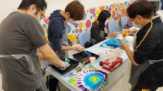 將不同的色彩染在布上,同路人一齊動手做,繽紛又好玩